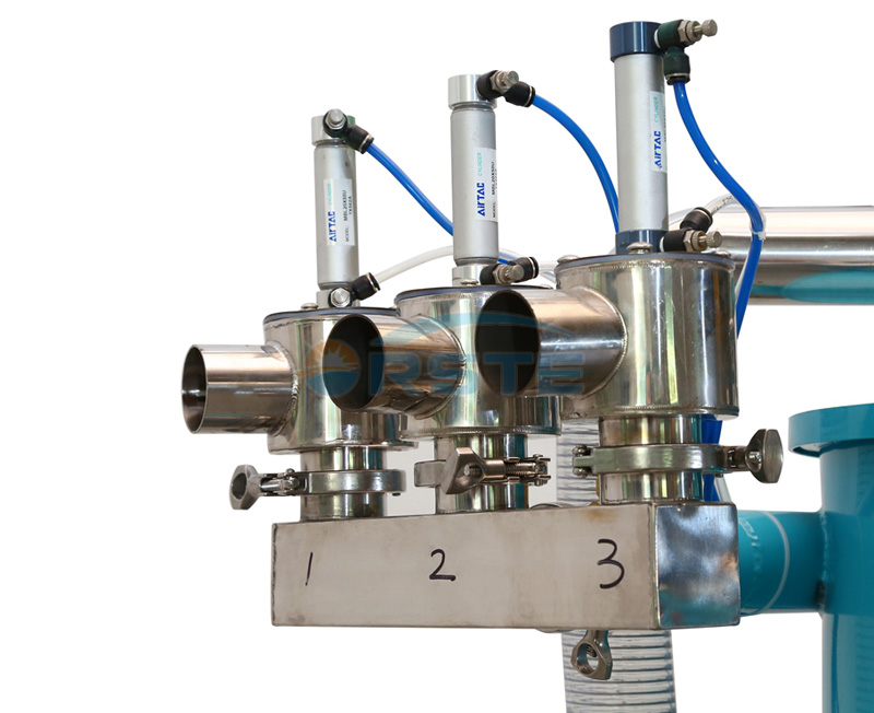 控制裝置啟動(dòng)真空馬達(dá)抽取料斗內(nèi)空氣,同時(shí)關(guān)閉落料閥裝置,使料斗內(nèi)產(chǎn)生負(fù)壓。在負(fù)壓力作用下,外部物料通過輸料管被空氣流攜帶到料斗內(nèi)。供料時(shí)間結(jié)束,真空馬達(dá)停止工作,內(nèi)部落料閥裝置閥門被原料推開,物料從料斗內(nèi)流出進(jìn)入成型機(jī)或其它設(shè)備。