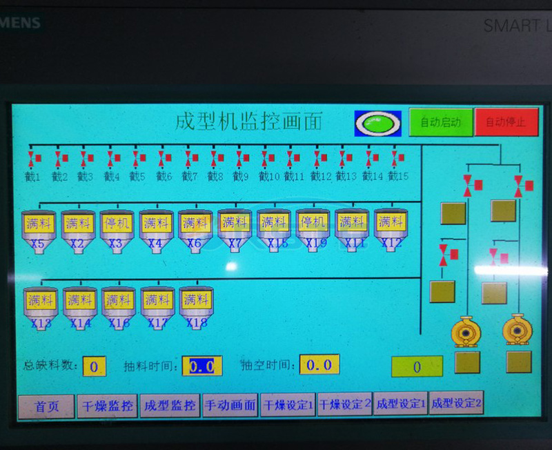 本中央輸送系統(tǒng)可對1-16個真空泵及1-384臺上料機進(jìn)行控制,標(biāo)準(zhǔn)機配置軟件容量可對384臺注塑機進(jìn)行集中輸送供料